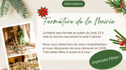 La Mairie sera fermée du mardi 23 décembre au lundi 5 janvier. Ouverture...