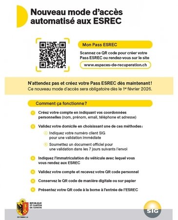 À partir du 1er février 2026, l’accès aux Espaces de récupération (ESREC) de La Praille, Châtillon et des Chânats se fera uniquement au moyen d’un QR Code personnel.