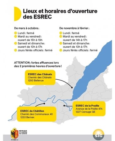 Retrouvez sur le nouveau site internet www.espaces-de-recuperation.ch toutes les informations utiles sur les ESREC : horaires, adresses, déchets acceptés et FAQ.